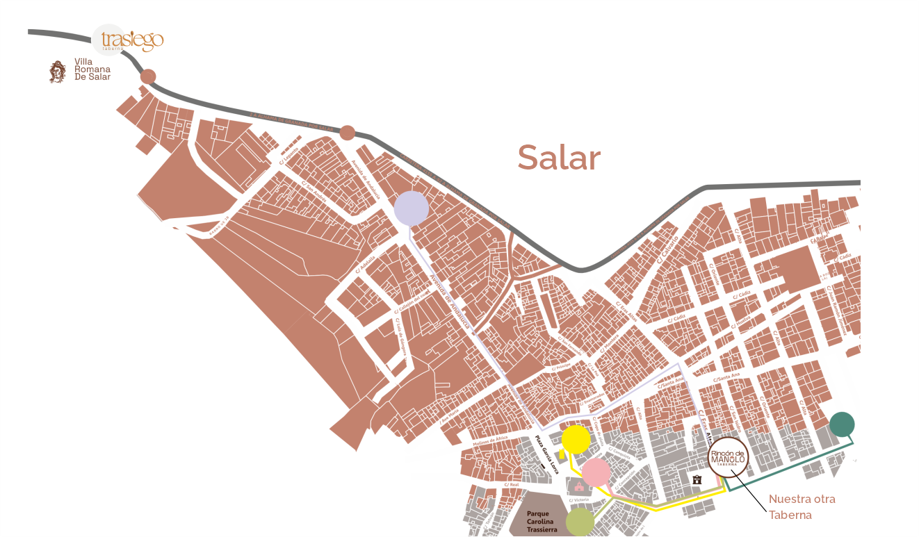 Nos encontrarás en la Carretera A-4154, justo enfrente de la Villa Romana y a solo 40 segundos en coche, un acceso rápido y cómodo para hacer una pausa y disfrutar de una buena comida.